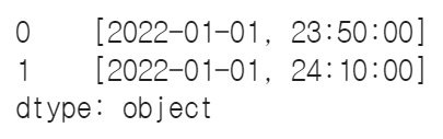 s1 = pd.Series(['2022-01-01 23:50:00', '2022-01-01 24:10:00'])