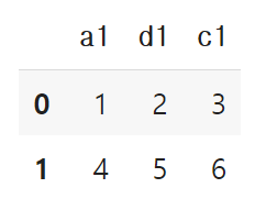df1 = pd.DataFrame(data1, columns=['a1', 'd1', 'c1'])