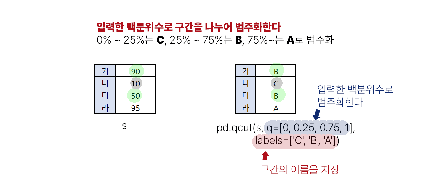 백분위수를 기준으로 구간을 나누어 범주화(categorization)하는 함수