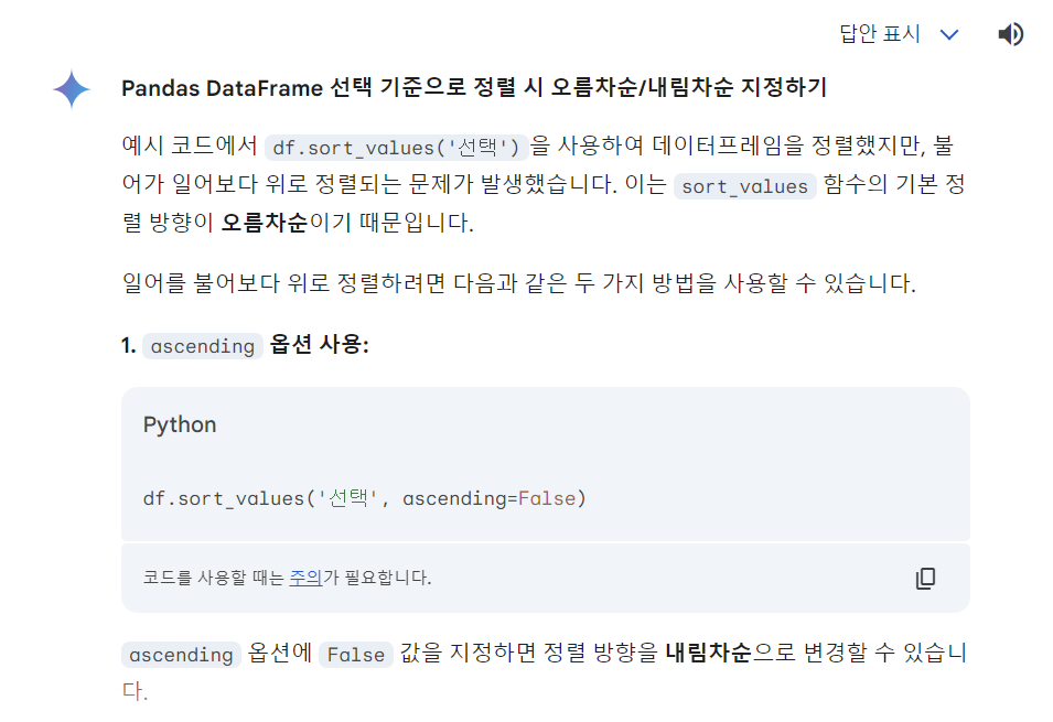구글 제미나이에게 위 결과를 물어보겠습니다