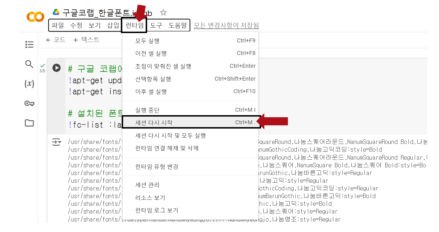 # 설치된 폰트를 확인합니다.