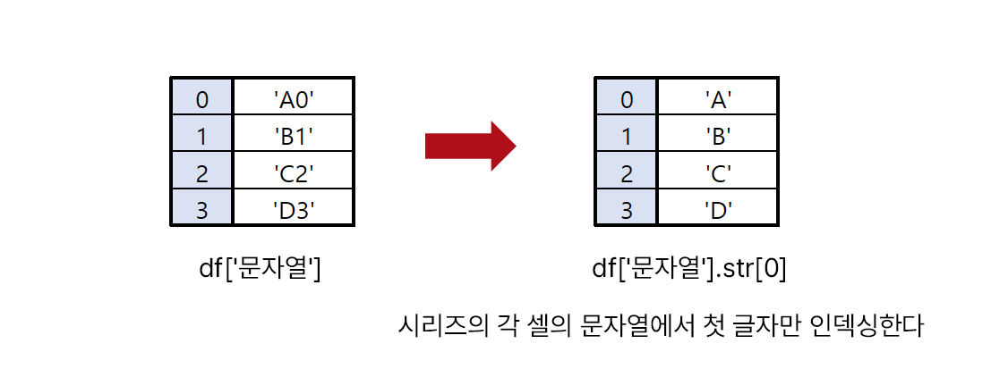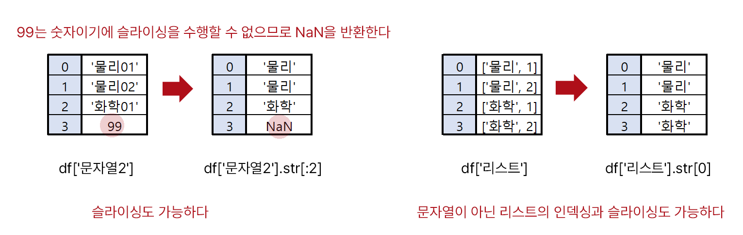 str 속성에 인덱싱과 슬라이싱을 하면 시리즈의 각 셀의 인덱싱과 슬라이싱을 수행한다