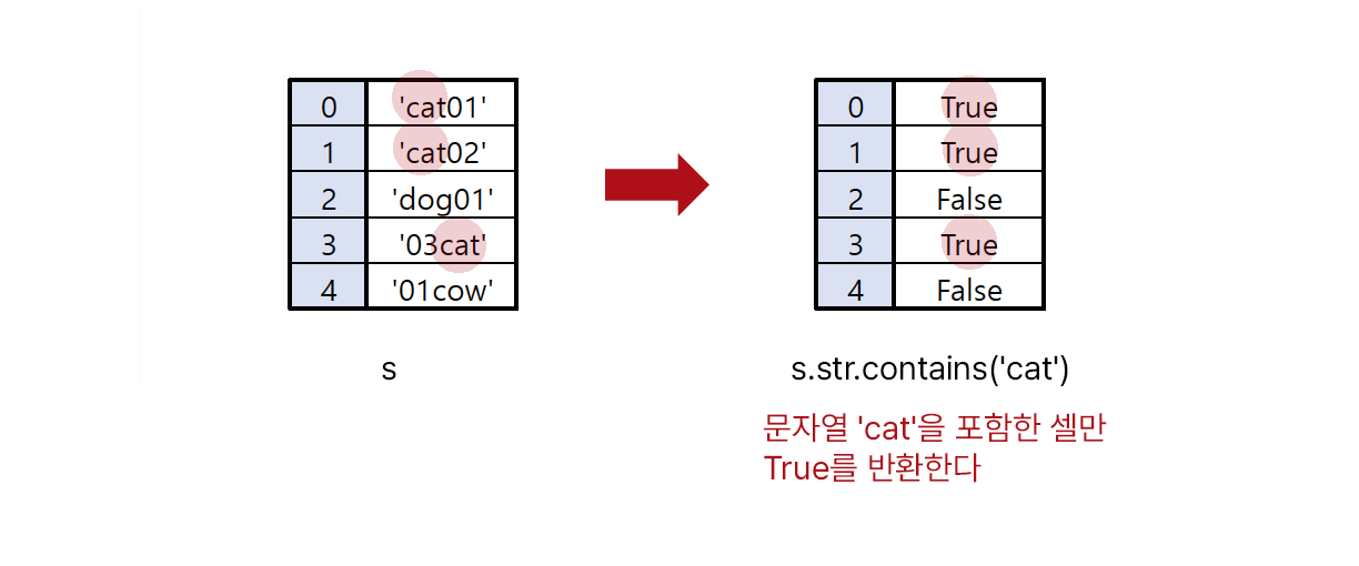 시리즈의 각 셀이 특정 문자열을 포함하고 있는지 확인하는 함수