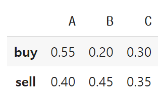 data = {'A': {'buy': 0.55, 'sell': 0.4},