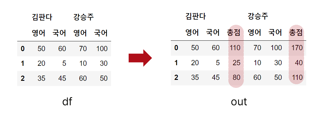 문제 : 멀티 인덱스인 열을 가지고 있을 때 subtotal 열 만들어 봅시다.