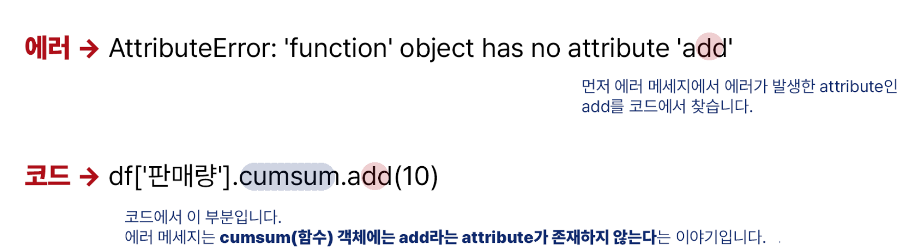 cumsum이 함수(function) 객체이기에 'function' object has no attribute 'add' 라고 알려준 것이지요.