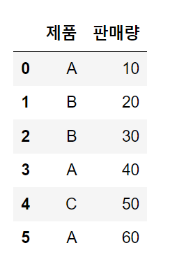 data = {'제품': ['A', 'B', 'B', 'A', 'C', 'A'],