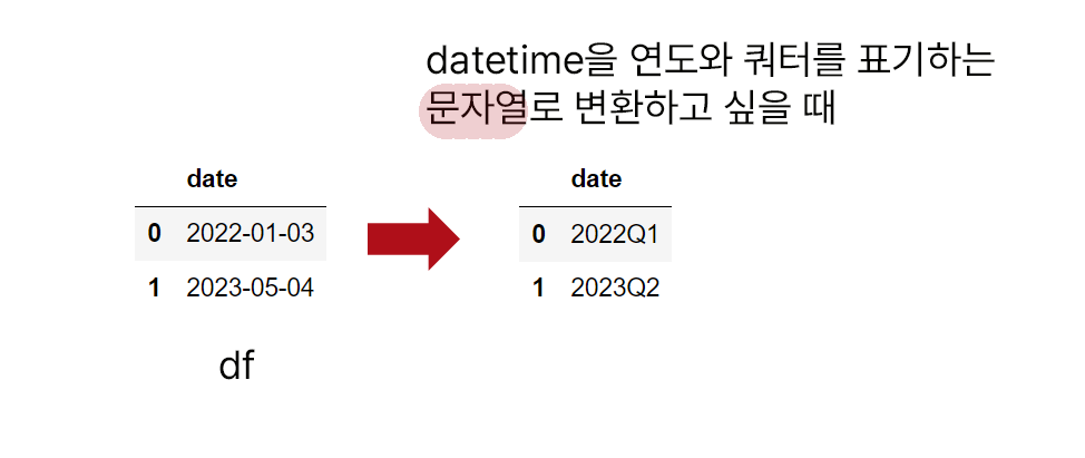 datetime을 연도와 쿼터를 표기하는 문자열로 변환하고 싶을 때
