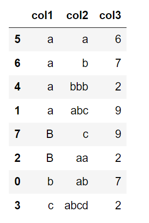 정렬의 순서는 col1 → col2 → col3 열의 순서입니다.