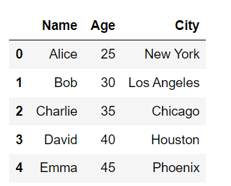 'City': ['New York', 'Los Angeles', 'Chicago', 'Houston', 'Phoenix']