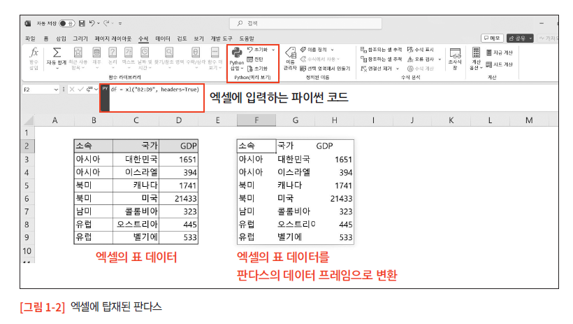 1.1.2 마이크로소프트의 엑셀에 탑재된 판다스