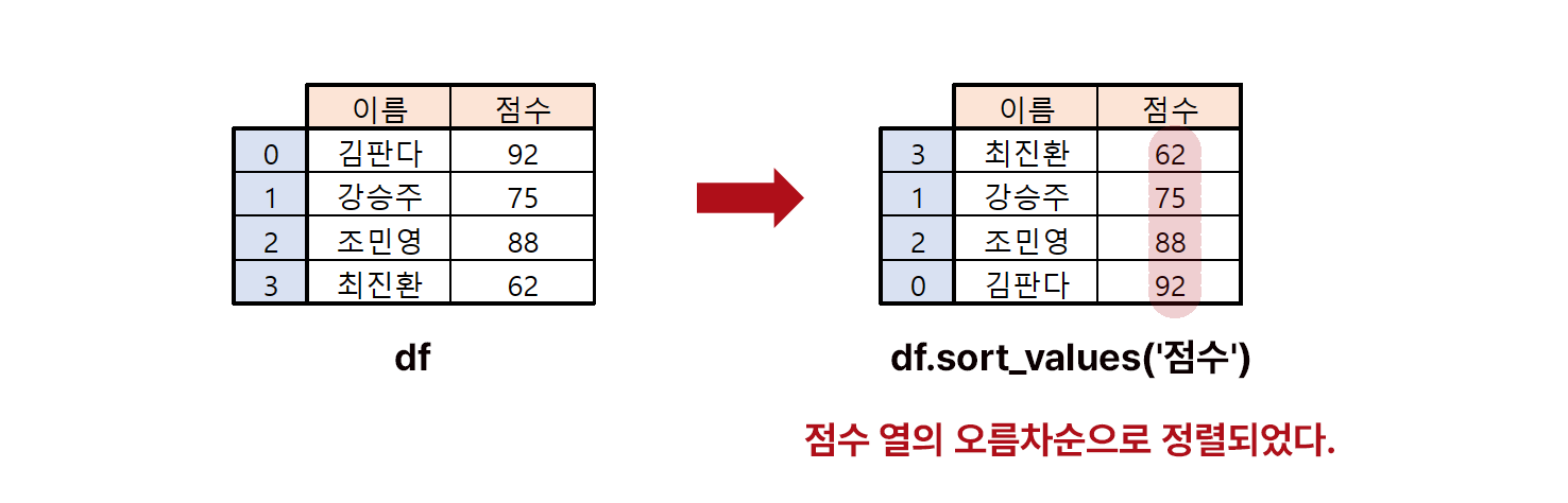 sort_values 함수의 주요 매개변수(parameter)와 인수(argument), 기본값(default)